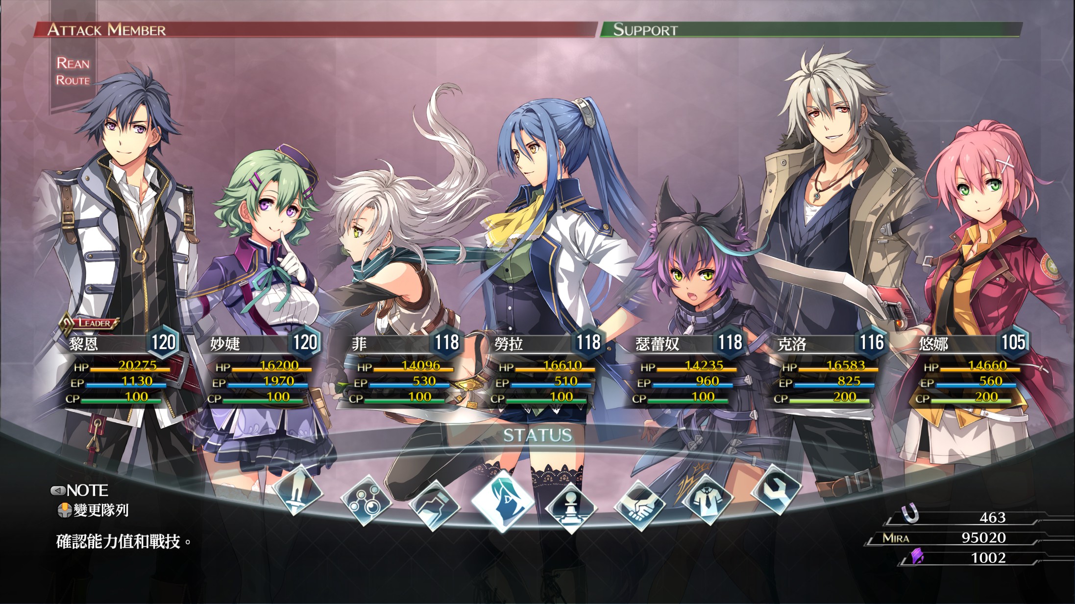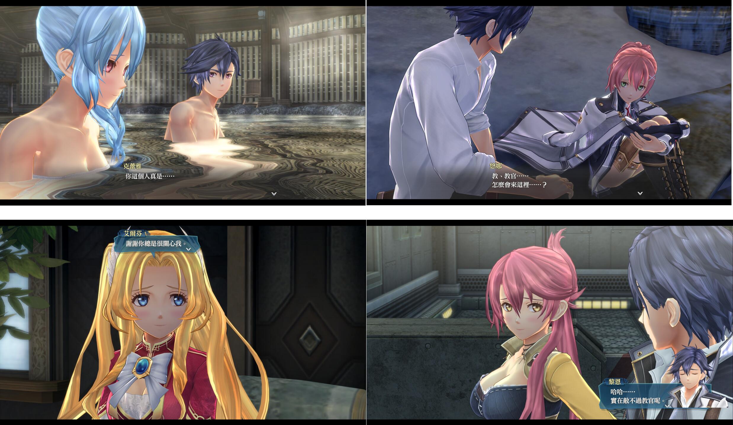 黎恩老师在创轨中依然保持了最为强大的后宫团阵容和万花丛中过叶叶都粘身的秉性,妙婕是老师的花痴小跟班、悠娜想要依赖黎恩老师(还有大家)、克雷雅少校和老师温泉泡澡谈人生、艾尔芬出场寥寥的剧情眼睛盯着老师,甚至连莎拉这样的大姐头也只有和黎恩老师在一起时才想起自己也是一个小鸟依人的(力速双A)弱女子,黎恩老师实在是罪孽深重的男人啊。