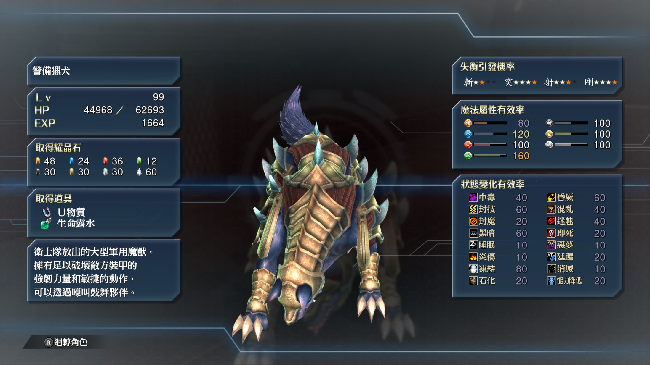 作为刚刚玩完了《伊苏9》的人,可以清晰的体验到法老控在创轨上投入的资源比伊苏好多少:除了肉眼可见的美术资源的使用完全不在一个量级。在《创之轨迹》中,作为核心玩法的战斗内容也要丰富和完善的多——从上图中怪物抗性和弱点就可以看出其战斗系统内容的“宽度”。