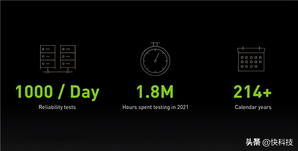 NVIDIA的Game Ready驱动就是这样积累起来的,内部有大量的团队从事开发及测试工作,测试进程在一天之内就涉及超过1000个、横跨大量已发布和即将发布游戏的不同测试。仅在2021年就有超过180万小时的测试,相当于214个日历年的时间。