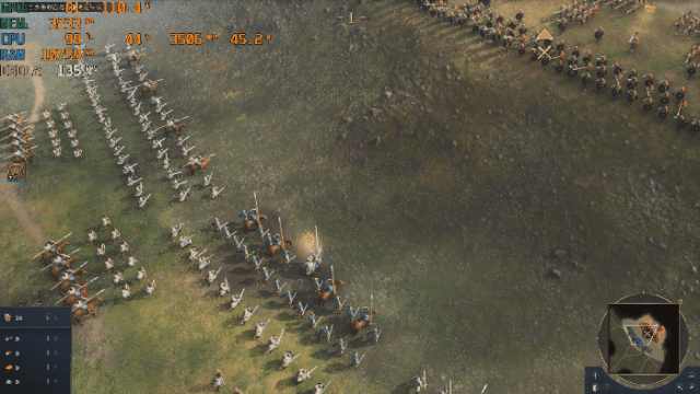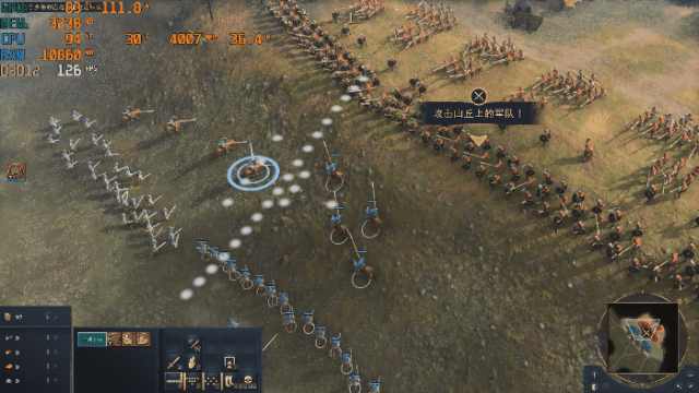 《帝国时代4》高画质情况下,打开黑斯廷斯战役任务。排兵布阵时的游戏帧数能够达到130帧+,GPU的功耗可以被“压榨”到110W左右。