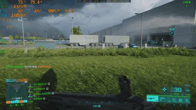 可以看到在高画质情况下,运动过程中帧数可以在60帧+,GPU功耗大概是75W左右。