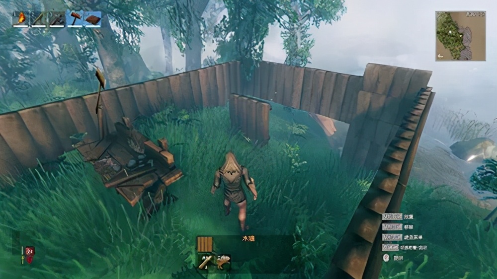 首先,搭一圈木墙确定我们房子的占地面积。