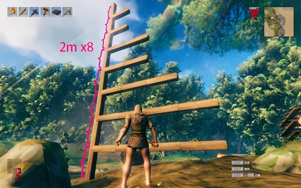 随后我又做了进一步的测试,用长度2米一根的承重柱拼出了16米的承重柱,达到了搭建木质房屋的高度极限。