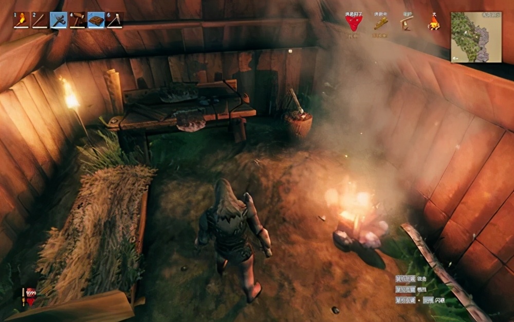 再用茅草屋把屋顶封好,铺上床,支起篝火,在天黑前搭好一个简易的小屋先将就一下。