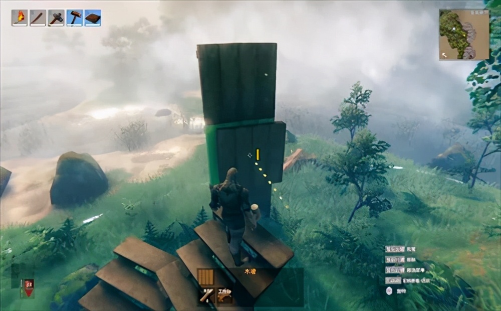 攒够了一定数量的木头之后,就可以着手盖房啦。这我熟,按照玩MC的建造逻辑开始施工。