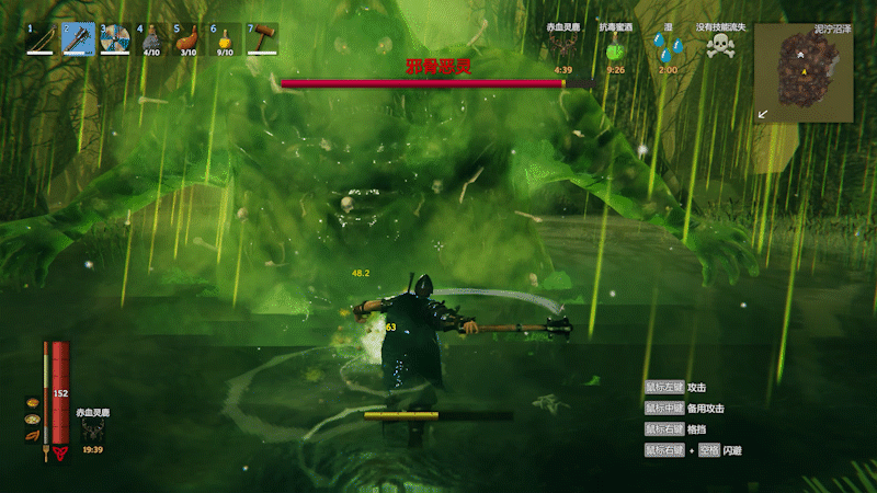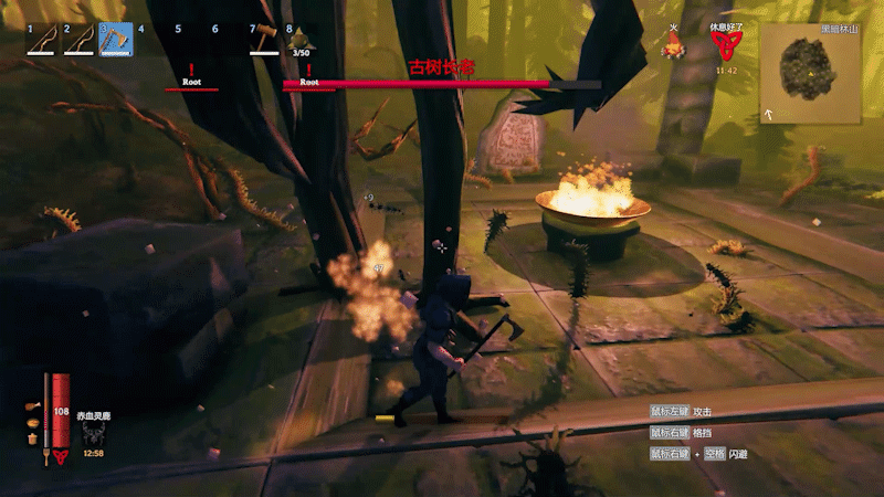 另外,藤蔓攻击只有我们远离BOSS时才会释放,拉近距离后老树是不会释放这一招的,这也是使用近战武器的一个原因。