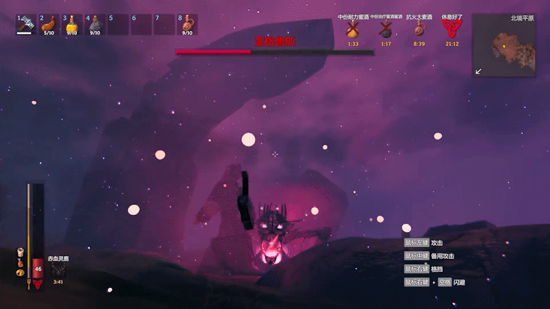 近战打的时候基本是砍三刀滚一下的输出节奏,很好把握,注意耐力即可。