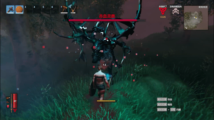 另外,灵鹿会经常遛弯,在它走动的时候可以随意进行攻击,灵鹿不站定是不会进行攻击的,当然要注意保留至少一格耐力用来防御。