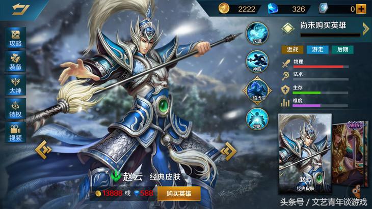 赵云是一个单体物理游走型英雄,依靠技能和装备的配合实现高输出,抓人也是一流的好,是众多ADC、AP的噩梦。