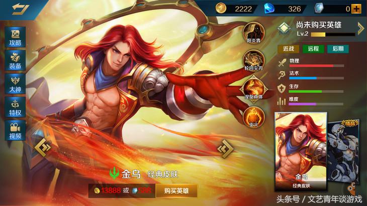 金乌是一个后期型ADC,输出全靠A,只要装备方面出好了,伤害炸的飞起,喜欢简单暴力的童鞋们赶紧入手一个吧。