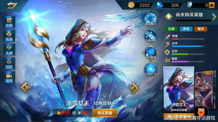 冰雪女王是一个爆发型法师,大招的瞬间爆发伤害令人发指,靠着冰杖几乎都是冰一个死一个。