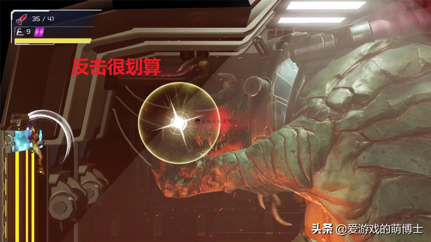 战斗中,一般敌人用近战攻击会发出黄光,此时我们可以按X来反击,对付Boss成功的话会有大量能量回复及导弹,熟练掌握的话,游戏就变容易了很多。不过,前面也提到了,反击EMMI机器人的时机是比较难掌握的。另外,Boss投掷的攻击大多不用闪避,我们用蓄力或导弹都可以打爆,摧毁后还可以获得能量回复或导弹。