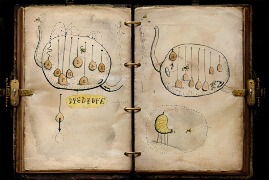 听管道里小狗唱歌的音调,来到转筒这里,符号按d到d+音域排列,按照攻略上的顺序按,degacgab,拿到成就。来到右上方井那里按一下开关。然后来到滚筒这边按第4个木片8下,等水流进田里,南瓜出现(现在没法采)。往右进入下一个地图。