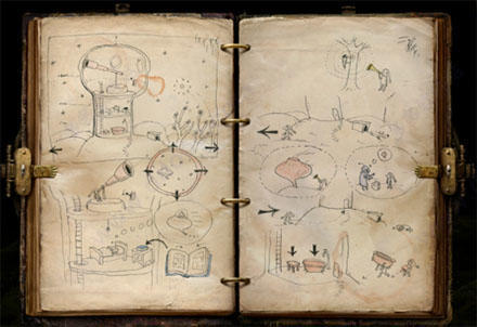 往右走到场景五。用小喇叭听山的声音,把幽灵一样的东西全拔出来。这时候野人就会让你讲故事给他看,按官方攻略上的顺序摆出四个小电影(这里不看攻略自己摸索超级有意思),让两个小人吃上饭,食物分别是鱼、马、象、猪(蘑菇可多次使用)。完成小电影野人会送你小剪刀,拿去Part3剪了矿泉水瓶,然后等着宇宙飞船完成。然后可以起飞了,还能剪刀的时候拿到一个成就。