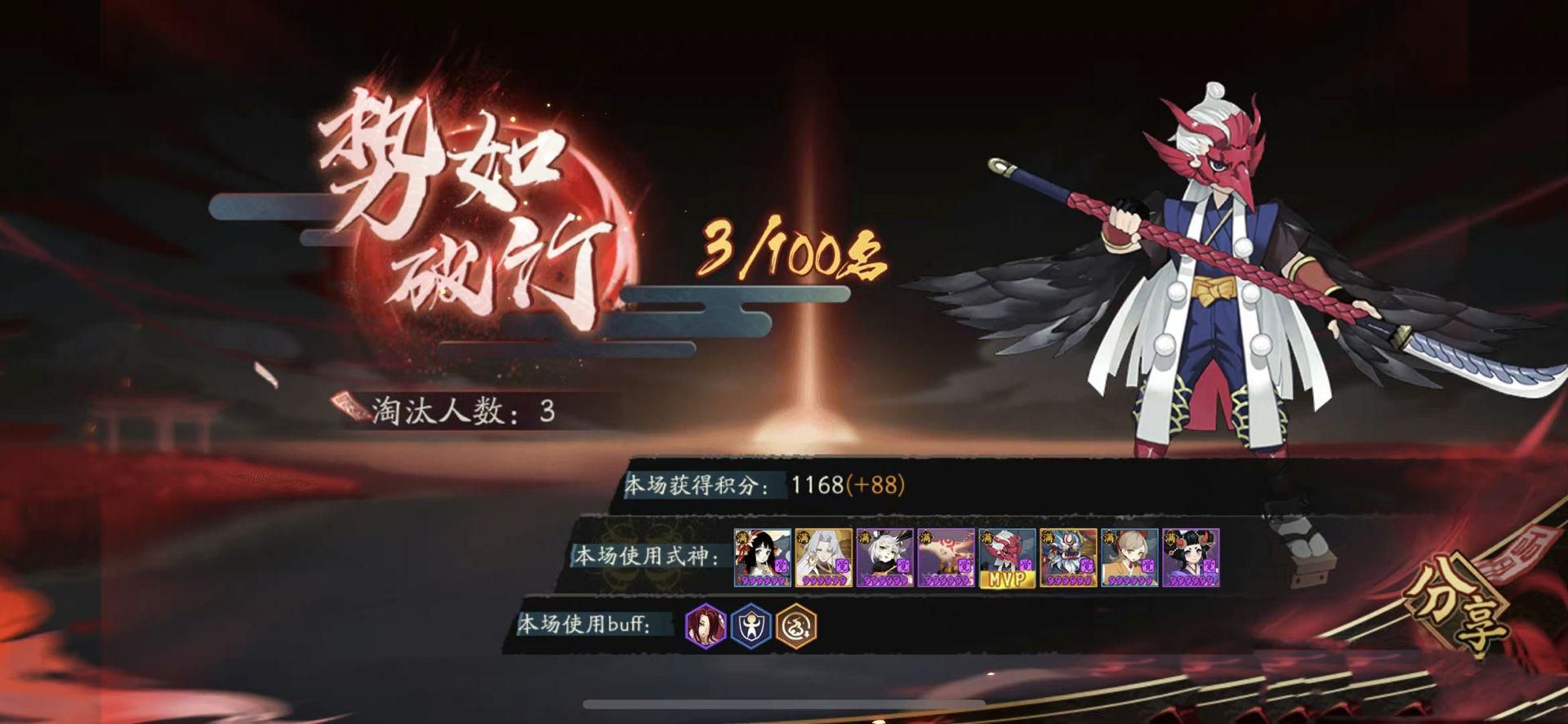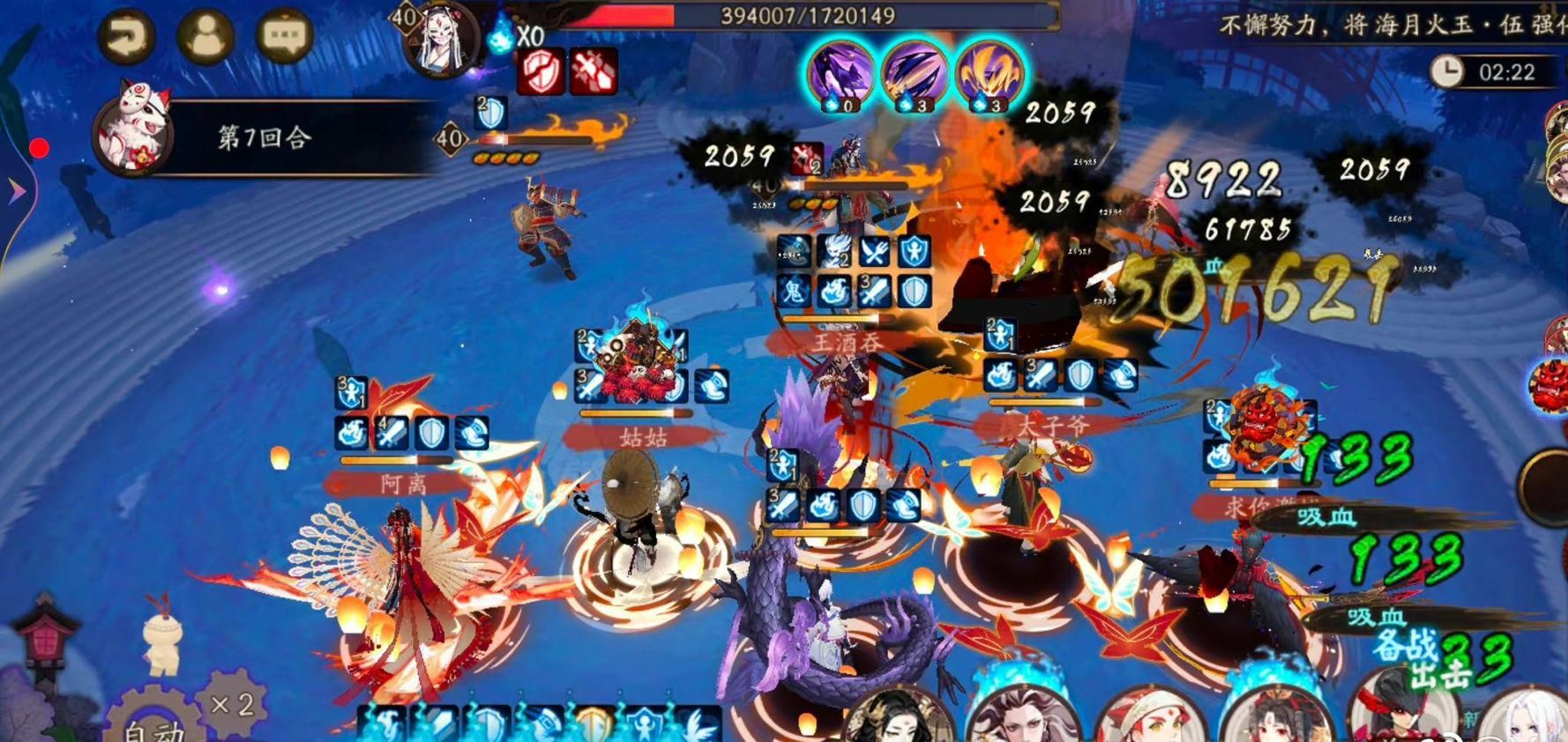 阴阳师用到的是源博雅,开局黑豹直接扑击能够激活鸦天狗的拉条抢到一速,然后就是永无止尽的邀请协战,打出大量高额伤害。