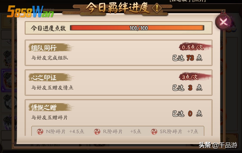 但是呢最推荐大家的,还是刷困28的狗粮,最为快速,在探索的副本里面,一个小怪就算是一次的组队,每天的100羁绊,刷得也是超级超级的快,基本上御魂要用一两个小时才能刷完的羁绊,在探索副本的组队里面,基本上半个小时就搞定了,而且还有各种的狗粮练了起来,这何乐而不为呢?