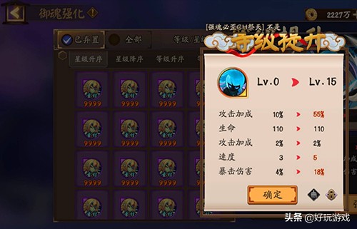 如果你已经有了练度,一个六星御魂副属性有好有坏,建议先强化到+6目测一下,若都强化到不好的属性上,就不建议再强化下去浪费金币了。
