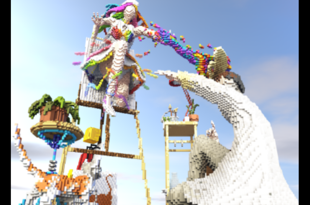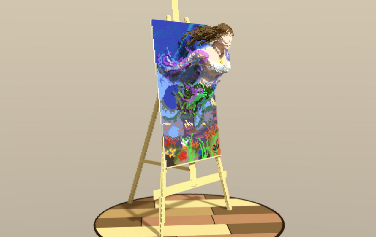 众所周知,《我的世界》里有很多大神的作品都非常的专业和优秀,并且还时不时“出圈”让人惊叹。所以这个游戏也算是艺术家们展示才华的一个平台。雕塑系算是完全的“游戏对口”,绘画系就有些微妙了。刚开始画家们都会创作一些像素画,时间久了还原个照片都是小意思。所以他们也不在局限一个平面了,而是既有多个平面展示,而且还没有失去绘画的特色。