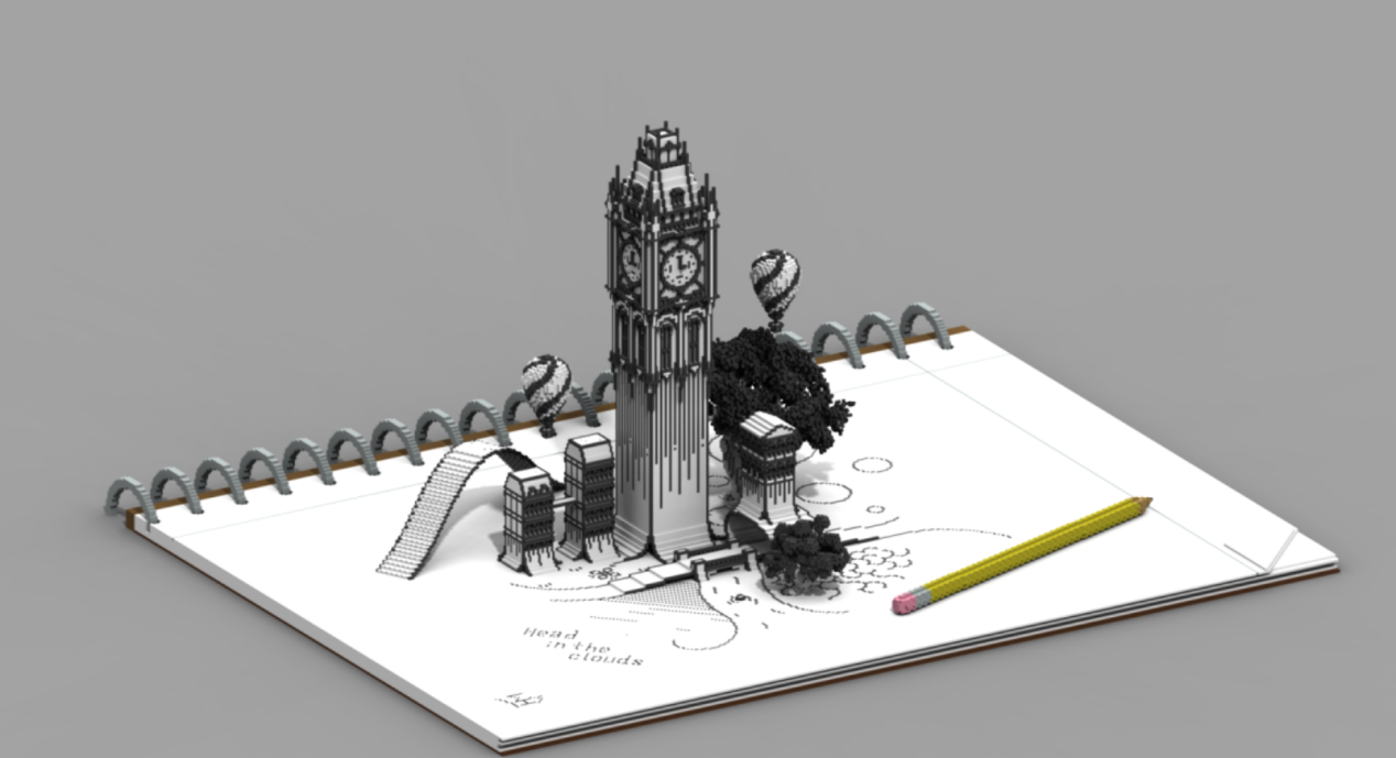 依然是不给纸张面子的作品,虽然就内容来说这个钟楼比较简单,但是想想弧度那么大的曲线都看不出方块的痕迹,这个技术真的厉害了。旁边速写本和铅笔也非常的写实。