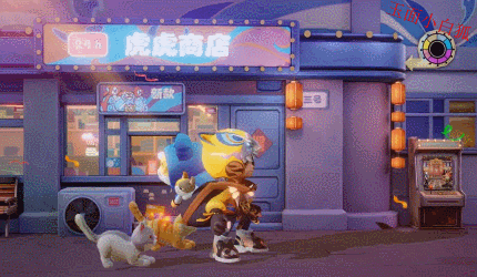 出场动画:小鲁班正在街边撸猫,天边突现超级大年兽,关键时刻背包中的大黄将其救下,最后大黄变成了小虎神。