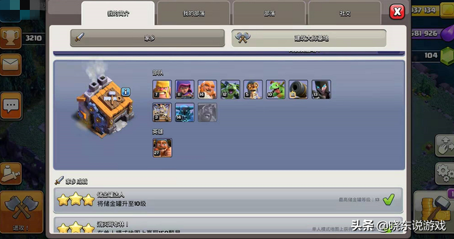 其次,这里的建筑工人只有一个,除非你是氪金大佬,否则想干个啥实在是太难了,随便升级个建筑或兵种就得好几天,相比较主世界,这里可真得当成是休闲模式,不然的话就太肝了。晓东当时在9本时就差墙没升满了,但推出10本后看着新出的那些建筑和兵种,实在是没精力了,索性直接放弃,根本伤不起啊。