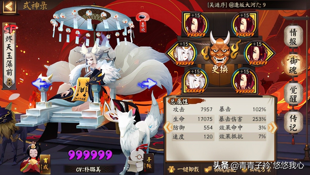 四速准备玉藻前,有了前面的铺垫当然到后面就到了输出出场的时候了,大舅为主力输出,SSR的获取还是有一定难度的,不过一般新手抽到大舅的概率现在也比较高。加上大舅现在的碎片并不是很难换取,所以可以和其他小伙伴选择换碎片来获得。御魂选择是很中规中矩的4破势+2土蜘蛛。