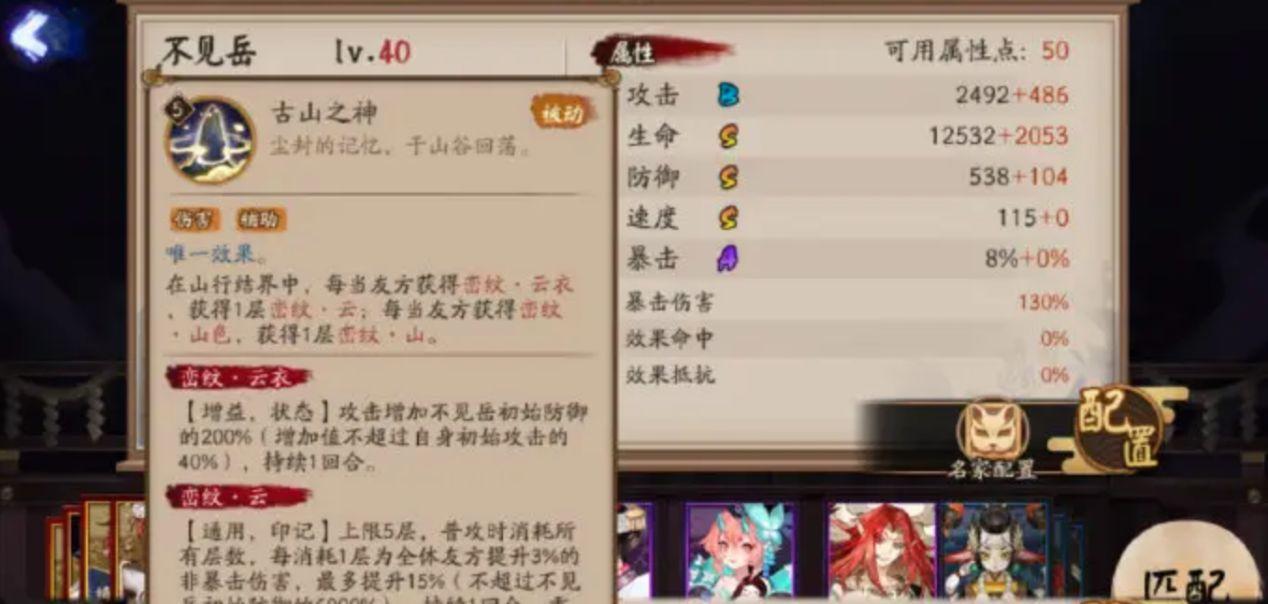 想玩好不见岳,就需要详细了解这个式神的机制,不见岳的增伤方式的增伤方式一共包含三种,分别是被动增伤、结界增伤、以及结界的增益状态增伤。首先是被动可以提供靠谱的增伤,还是非爆伤buff,由不见岳被动提供,当有被动的不见岳普攻时,消耗峦纹·云后获得。主要注意的是被动的升级效果对增伤的数值没有直接影响,影响的是峦纹·云的获取途径,进而影响获取数量。