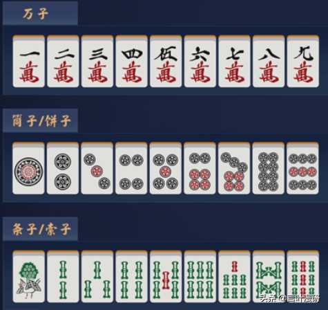 数字牌,图中的万子、筒子(饼子)、条子(索子)的集合。