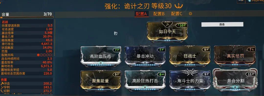 (3)聚焦能量+高阶狂热打击构成万金油的腐蚀,元素倒是可以随意点,如果遇到是合金敌人就自觉换成辐射即可。