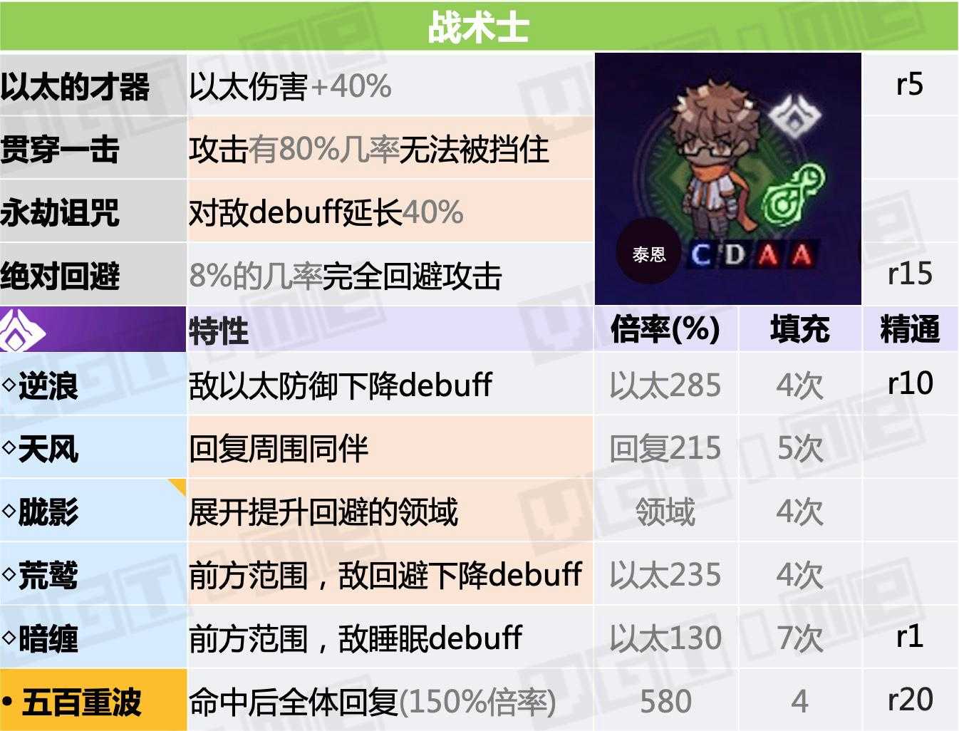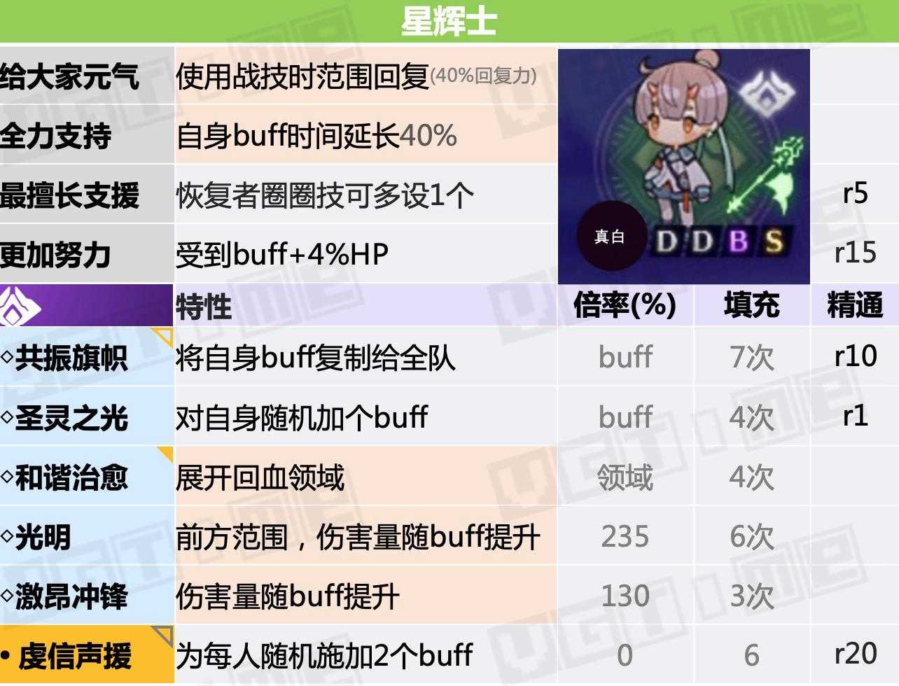 利用 buff / debuff 进行辅助,天赋技是瞬间全体回血类型效率比优妮还高。