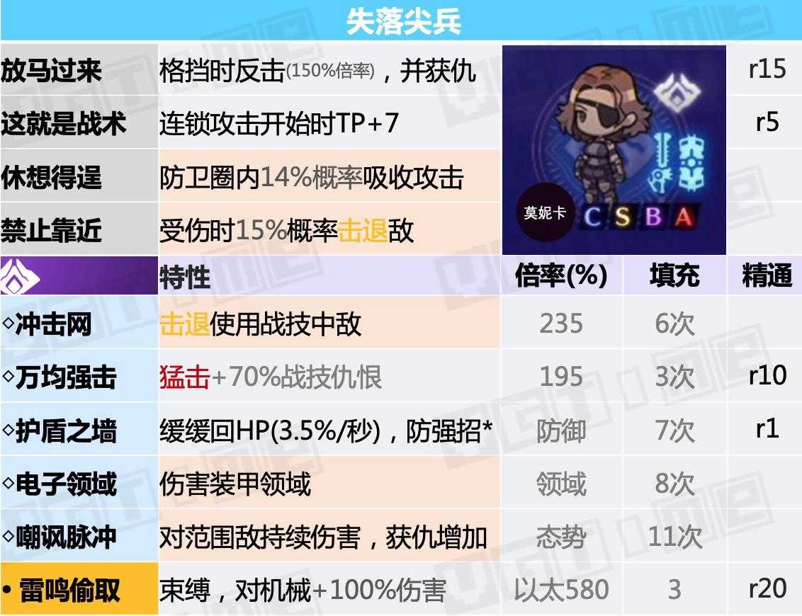 上表中列的是默认战技,都能替换配置,故简单看看即可。
