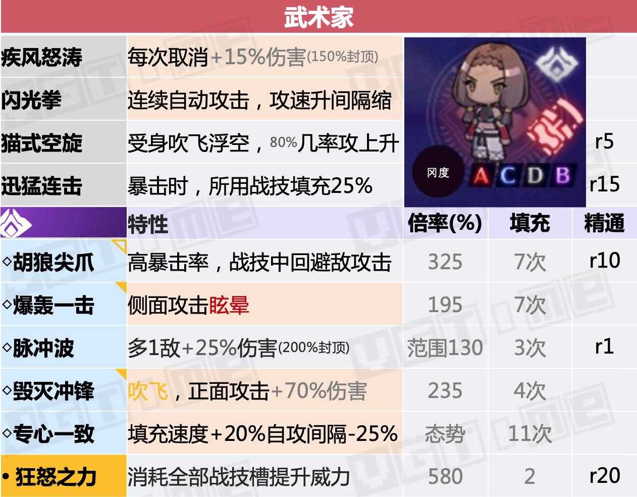 从此角度本职业和雅乐士(舞娘,下述)职业的契合度非常高。或者也可以养成天赋槽快满了就暂时不打战技了先打自动攻击的习惯。「闪光拳」的被动基本也就是以这个思路存在的。