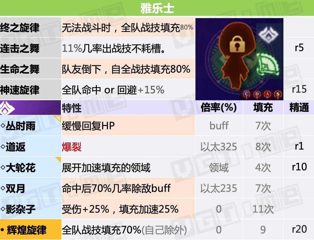 高输出的代价是低回转率,回转率如此低的情况下,想达到最高的 400% 加成需要很多时间。可考虑和舞娘职业进行搭配,以及从配装角度进行强化,提升回转率等。