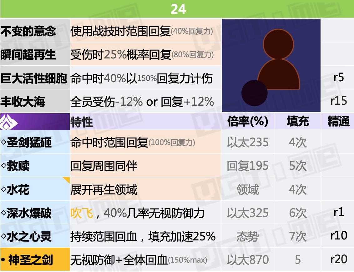 极限奶妈,几乎所有战技都和回血有关,但也能做出无视敌人防御的直击。