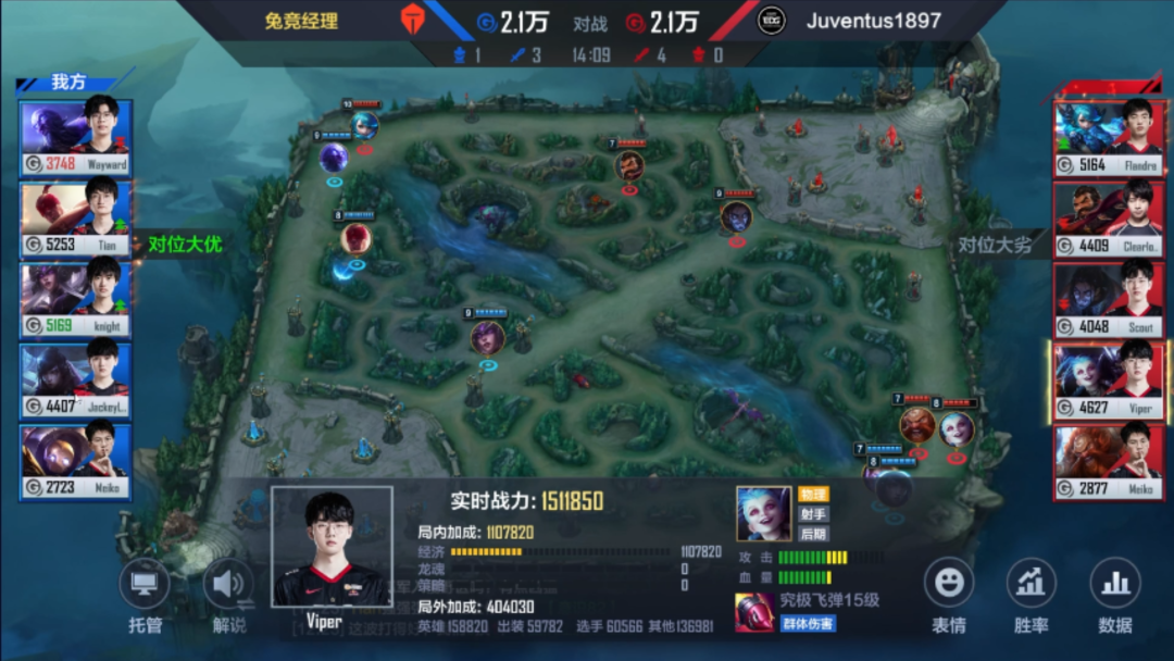 哪怕对方是后期最强的冠军团队的Viper也是随便的来虐