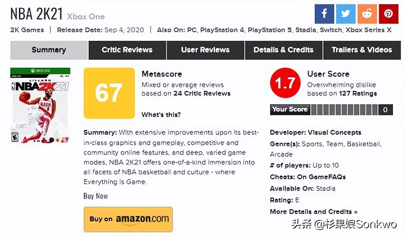 果不其然,《2K20》一经发售就彻底翻车。宣传期间吹上天的女篮其实只能在快速模式里玩,首发以后游戏里遍地都是 BUG 和优化问题,Switch 版更是直接开摆。游戏的 M 站用户均分只有 1.6 分,创下了历史最低记录。