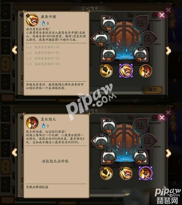 小鹿男被动和技能3重做,由之前的辅助输出双混式神,变为了纯群攻输出式神,原本的光环技能变为了自身叠加buff,是否能够驱除有待考证。不变的依旧是buff来着阵亡式神,攻击加成和攻击次数都是。因此套路还是不变,小鹿男现在和酒吞一样,是越战越勇的式神,多少有些类似,但是一个是群攻单段,一个是单体多段。