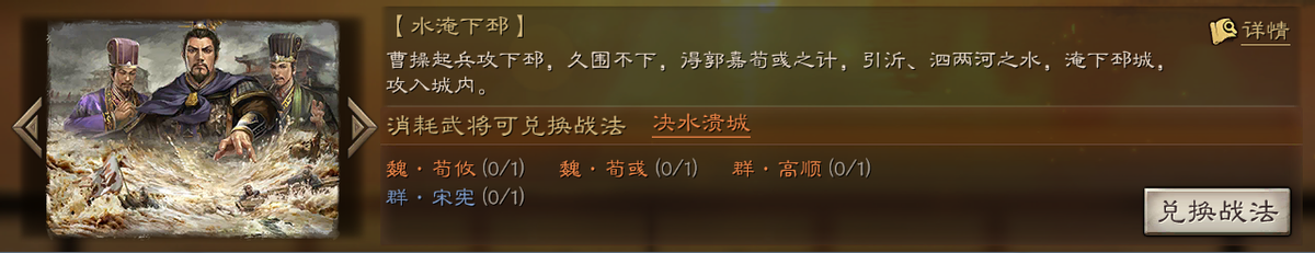 决水溃城 兑换条件:荀攸、荀彧、高顺、宋宪