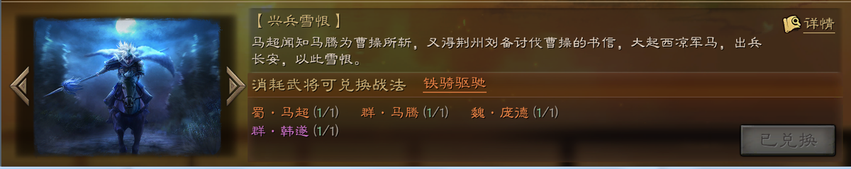 铁骑驱驰 兑换条件:马超、马腾、庞德、韩遂