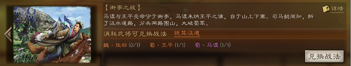 绝其汲到 兑换条件:张郃、王平、马谡
