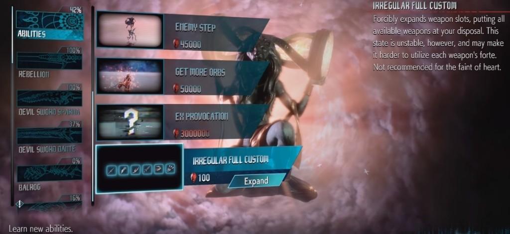解法:根据海外情报,想买完Dante的所有技能需要先通过「Son of Sparda」难度,取得技能「Irregular Full Custom」。还得在任务11取得「Kalina Ann」火炮武器,组成「Double Kalina Ann」才能开启技能购买。