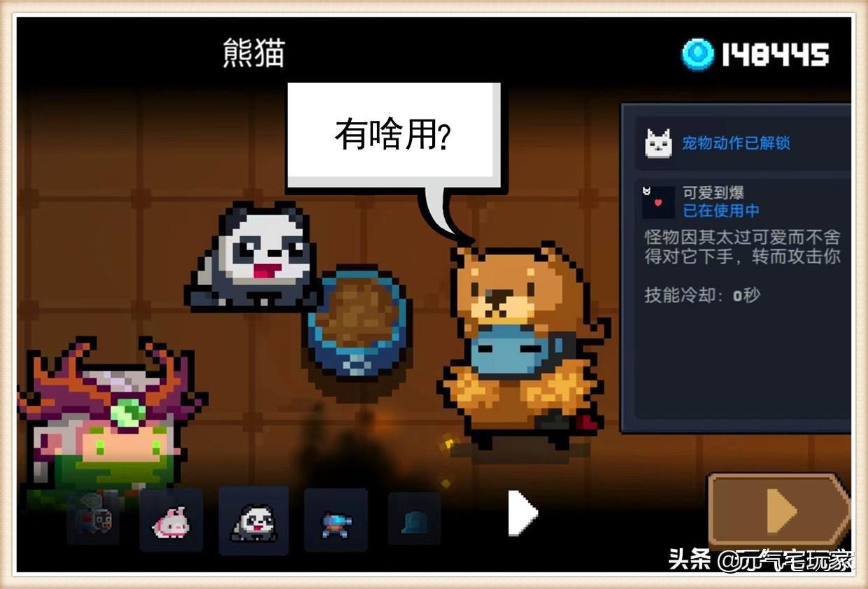 熊猫的解锁方式十分简单,只要玩家种植或者是锻造一个“蔬菜武器”再喂给它,就能自动解锁这只专属宠物。但是熊猫也用自己的实战能力,向大家概括了一个观点,那就是“好货不便宜”。自身不会收到攻击,反而将“仇恨”给予玩家,这种宠物老宅真是要不起。
