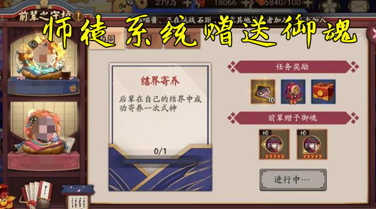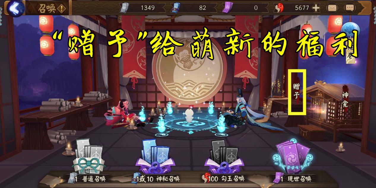 这个系统是给新玩家的福利,老玩家也能从中获取到一些福利。在这个系统里面分为式神赠送和碎片赠送,而针对新玩家的玩法就是"式神赠送",老玩家们可以向新手玩家们赠送一只R阶或者SR阶的式神,稀有式神们是不可以进行赠送的,N卡们也没有任何赠送的意义,基本上都是赠送一些输出类的SR阶式神。