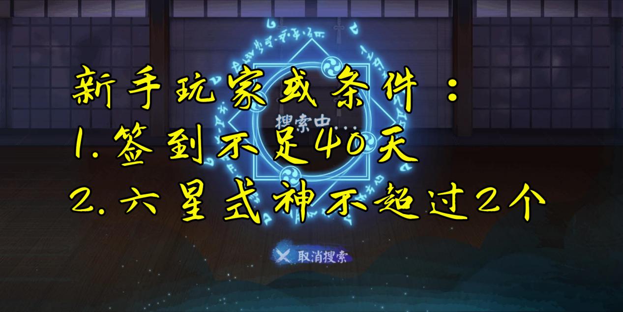 "新玩家"的定义和收徒弟的规则是差不多的,在这个系统里面新玩家的实力要求要更低一点,需要玩家签到的天数不超过40天,这个就是纯粹的新手玩家了;或者说6星式神的个数不能超过2个,这个就和玩家本身的等级、签到天数无关了,只要手里的6星式神足够少,就可以得到老玩家们的赠予。