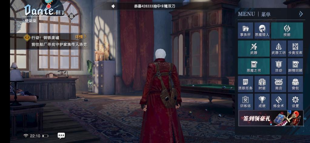 主菜单一、事务所:每日、主线、挑战任务均在这里:完成可获得声望,提高声望等级,获取功能加成二、恶魔猎人:先版本测试中只出现了但丁与蕾蒂,两种角色完全不同:但丁:主武器为剑与双刀、副武器为:双枪与散弹枪、蒂蕾:主武器为火箭筒与冲锋枪,副武器为:双枪与散弹枪,副武器虽然名称一样,但是也是不能通用的哦三、技能:前期最重要的一环,PC端的技能是陆续跟着剧情即可解锁,手游变成了材料+技能点,没解锁技能各种华丽的操作都用不出来的,这边建议前期主点主武器与功能技能四、武器:武器分为传说、史诗、稀有三种,均可抽卡抽出,新手十次内必出史诗,三十次内必出传说。五、武器工坊:洗练武器,增强铭文,解锁附魔、分解同级别武器可增强一次铭文,洗练消耗银币与绯红原晶,史诗级武器以上自带两条附魔,剩下需使用星辰精金解锁。六、卡奥宝库:抽武器的地方七、恶魔之书:通关第三章解锁,相当于一个图鉴,打过的BOSS都会在这里,可使用材料献祭,每个恶魔给的属性加成不同八、活动:巅峰试炼:分为五关,挑战各类强大的BOSS,主要获得献祭材料,共五关不能停,关卡血量继承邪恶冒险:掉落武器材料、迷影魔藏:掉落技能材料、贪婪藤蔓:掉落红魂九、剧情回顾:通关的剧情副本可以在这里进行重复刷,每个关卡可以挑战三次,每一章都有星数奖励十、活跃任务:每日任务与每周任务都在这里,完成获得活跃点,领取各类奖励十一、时装以及商店:各类时装,以及材料物品购买的地方十二、训练场:各类技能的指导教程与站桩练习十三、成就:完成成就获得成就点数,提高成就等级,获得奖励十四、炼金术:各类材料置换的地方以上就是鬼泣手游中出现的各类养成与菜单栏系统