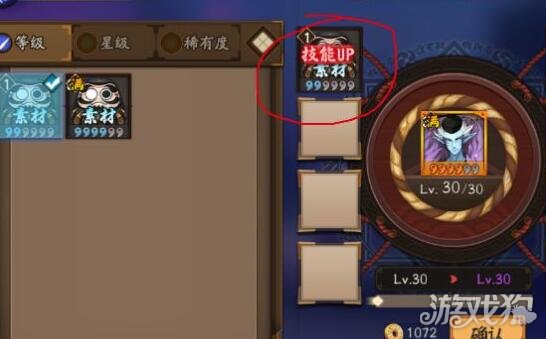 升级技能有两个办法,第一种是喂黑蛋,也就是御行达摩。还有一种方法是喂相同的式神也能够哦达到升级技能的效果。