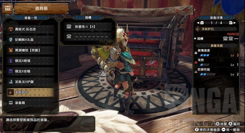 腰:钢龙腰,自带钢壳的恩惠1,挑战者3 (S2,插铁壁珠) 合计:钢壳的恩惠1,挑战者3,防御性能1