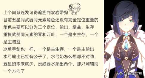 看样子应该更偏向于辅助的定位。因为之前出过了水系的纯主C 公子,水系奶妈珊瑚宫心海,将出半站场E输出Q挂水且能辅助的神里凌人,那么下一个水系弓箭手角色,如果不想和之前的角色定位重复,的确辅助可能性不低。