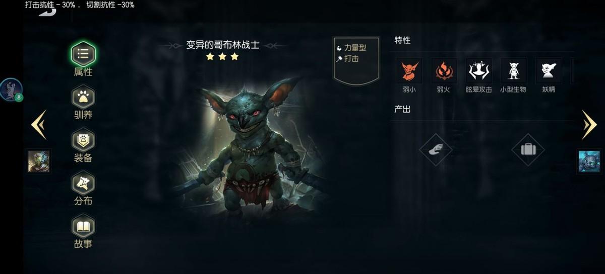 首先是新手营地中的新手营地,鹿人营地。其中的怪主要特点如图为高魔抗,低穿透和切割,惧怕弱点暴击。所以我们可以选择弓箭和双斧,弓箭穿刺加头部暴击能打出高额伤害,斧头的切割也能打出克制效果。