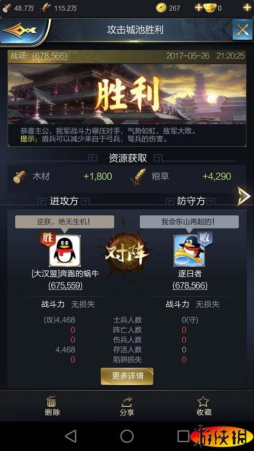 当然,好戏还在后头!你除了需要神将来带兵打仗之外,有时候巧妙和合理的搭配兵种可以达到事半功倍的效果。因为战争时兵种遵循着相生相克的原则,譬如枪兵专克骑兵,骑兵专克盾兵等,所以我们在攻打其他玩家的时候,最好还是先侦查一番,然后根据对方的兵种来调兵遣将,使胜利达到最大化。